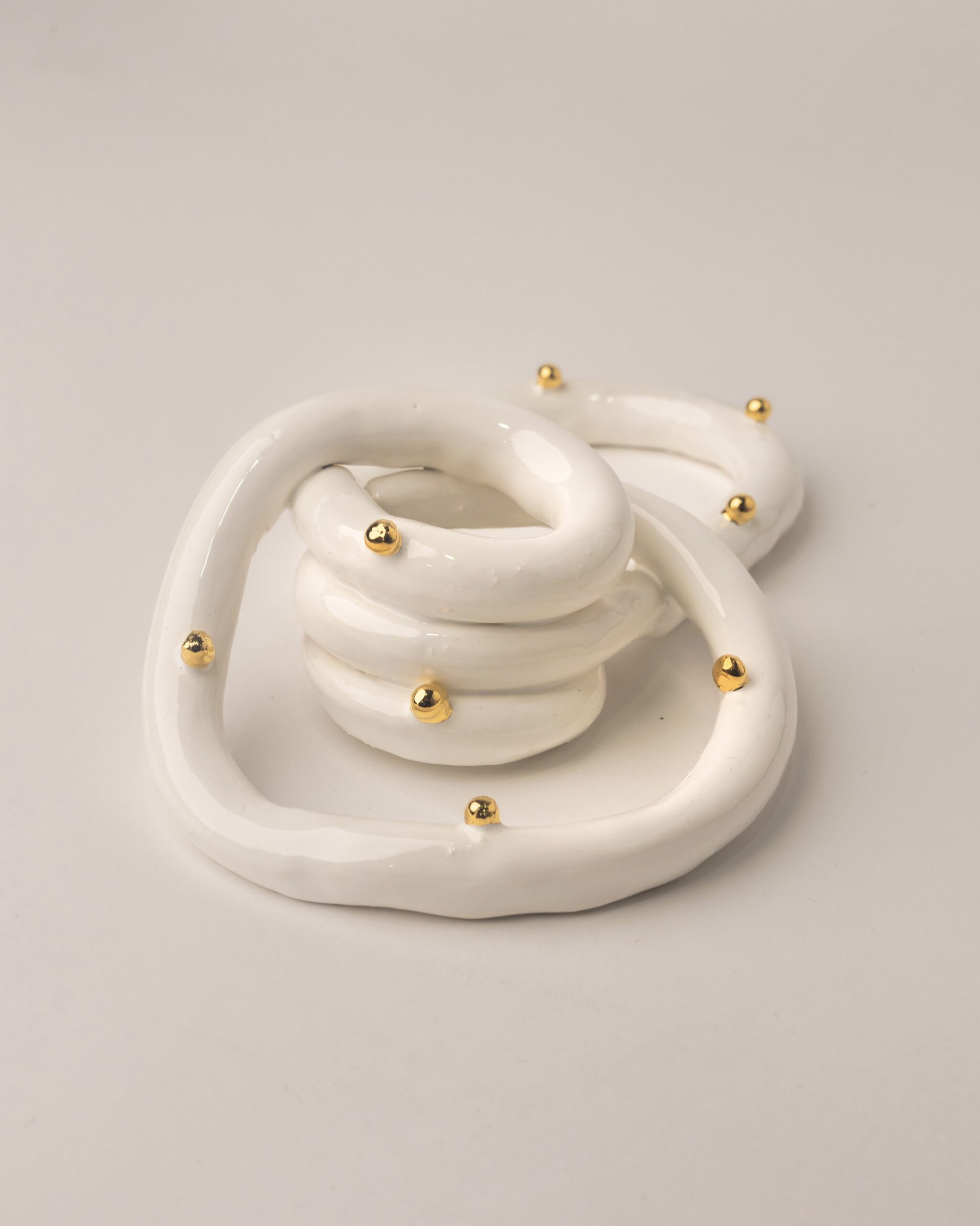 Piezas de cerámica hechas a mano por @Karlugás con notas de oro líquido.